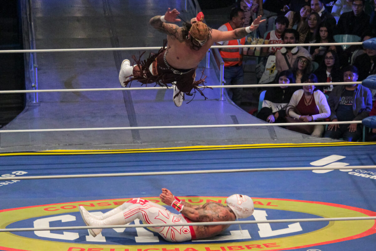 El campeón nacional de peso ligero, Rayo Metálico derrotó en 8 minutos al Troglodita en el match relámpago de la noche.
