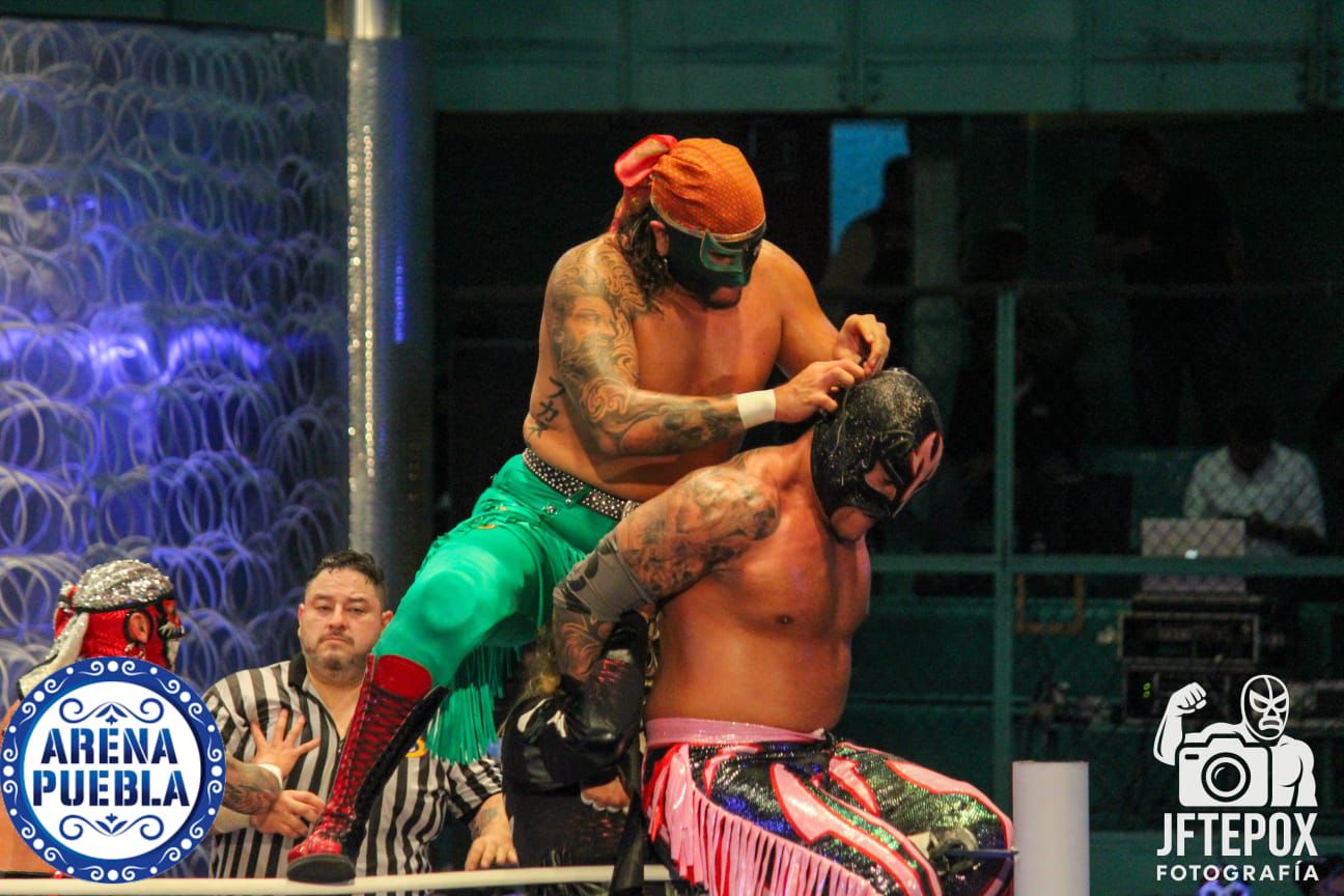 En la segunda lucha de la noche los poblanos, Millenium y Rey Samuray, se impusieron en 3 caídas a los Calavera Jr. I y II.